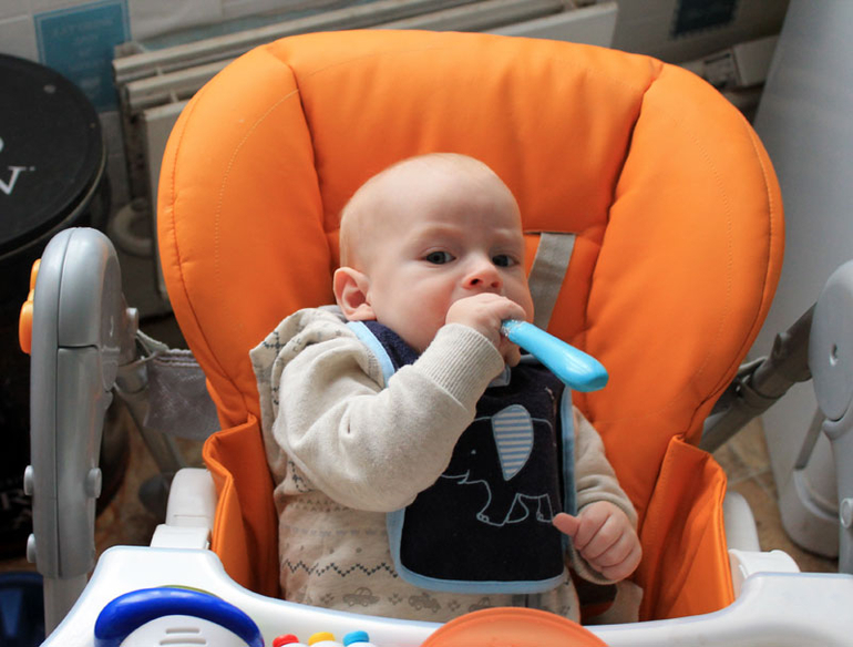 Ты знаешь, я ему тоже набираю кашу в ложку и отдаю:) И он чешет десны, но так как ложка с кашей, то приходится ее глотать. От моего кормления категорически отказывается уже после третьей ложки.
