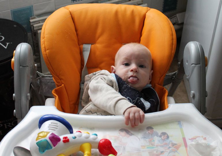Спасибо:)У нас сейчас в городе похолодало до 10 градусов тепла, а стул, на котором Тимка сидел — прямо под окошком, а оно было вплоть до кормления открыто. Я решила перебдеть:) Но на юноше только слип:)