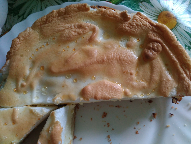 Решила я сделать что-нибудь вкусненькое и увидела рецепт этого замечательного пирога с красивым названием "Слезы ангела". Тем более, что для его приготовления нужны простые продукты. А когда пирог остывает, на его поверхности появляются "слезки" (капельки). Поэтому он и получил такое название.