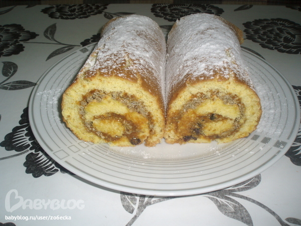 Еще вчера решила попробывать приготовить что то сладкое, но что б не долго и нашла у нас в группе рецепт! Девочки, это не что!!!!! Готовиться быстро, а главное очень вкусный! Я промазала корж варенной сгущенкой и посыпала сверху халвой и орехами измельченными в блендере и немного изюма, что осталось!!!!! Вкуснее чем в магазине в 100 раз! Ну естественно вчерашний я не успела сфотографировать, но сегодня испекла другой, но с такой же начинкой! Вот фото