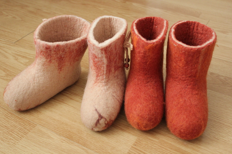 8. Самовальные валенки цветные (без калош), длина по стельке 15 см, 300 рублей за пару