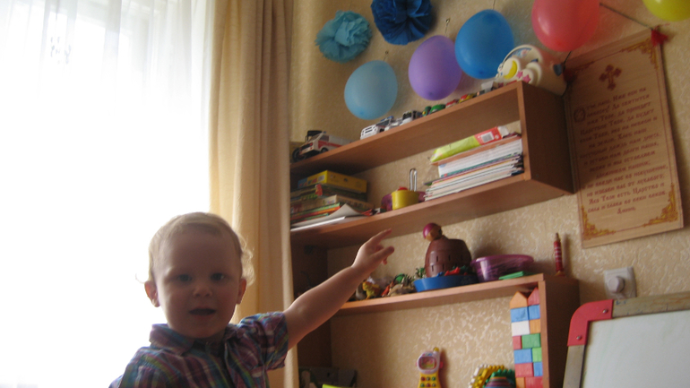 Украсили комнату шарами и помпонами,Тима проснулся и от радости минут двадцать хихикал))А накануне сводили малыша в очеердной раз в пожаоную часть на экскурсию... Счастья было.... Чувствую, будет спасателем,когда вырастет))))