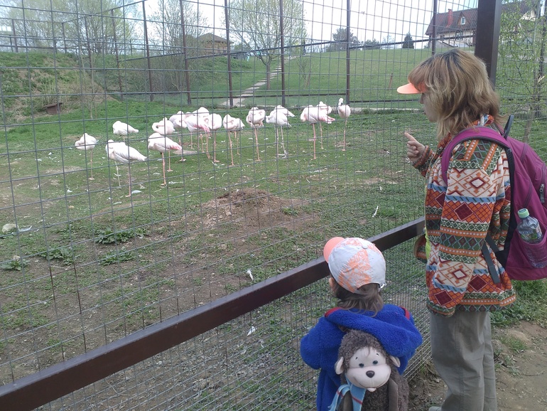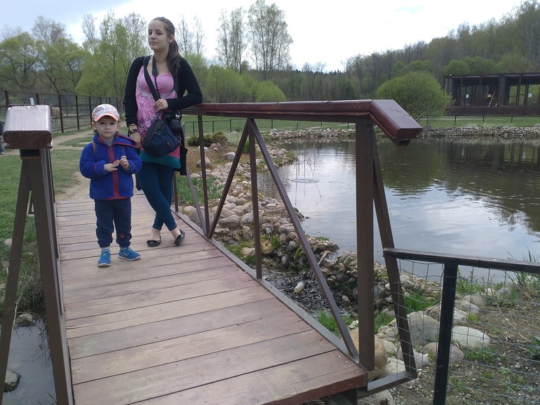 В нем огромное количество птиц, самых разных, обычных, и не обычных, красивых и не красивых, тихих и громких... Разновидности всем известных голубей, кур, петухов, фазанов, гусей, лебедей, павлинов, попугаев, журавлей, сов, и других хищных, певчих, и домашних птичек.... Вообщем, чтобы обойти первую территорию нам понадобилось 4 часа, с перерывом на обед. Были мы в маленьком составе - я, дочь и младший сын. Никто не не ныл, не устал, всем все понравилось, все были в полном восторге. Кроме птичек , на территории парка есть много животных: домашний скот, дикие не обычные - капибара, патагонская мара, игрунка, дикдик и прочие... , дикие всем известные с разных континентов.. Вообщем было очень интересно, не смотря на то, что нас регулярно пугал дождик, собирающийся вот вот пойти...- пошел, но в это время мы были в кафе. Там, кстати, очень приемлимые цены, не плохое ,почти домашнее меню, и довольно быстрое обслуживание (на 3-их потратили 1000 рублей - основное блюдо + пирог с вишней и чай). На выходе есть магазинчик с сувенирами. Естественно прикупили магнитик и дочери тематическую футболку (она их коллекционирует). У нас собой была еда, но мы все же решили раскошелится). Для "своих" обедов там есть большое количество лавочек, с навесом и без, где можно развернуть свою скатерть-самобранку, и не спеша покушать на природе. Есть большая детская площадка, удобная для всех возрастов, с отличной песочницей, качелями, горкой и лазилками.