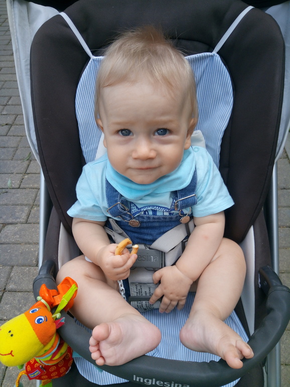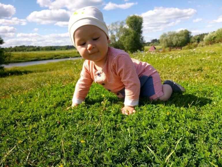 Гуляем 2 раза. В основном в коляске сидит, но иногда просится вылезти. Ношу на руках, трогаем все вокруг. Спускаю на траву, на футбольное поле, пока средний сын гуляет рядом. Любовь у них сильная. Обажают и скучают по друг другу, когда средний в саду. Полину , мне кажется , Артемий воспринимает как почти 2ю маму, она же его обажает нежно). Старший сын наконец начал проявлять интерес, улыбается ему, разговаривает... И не много фото...