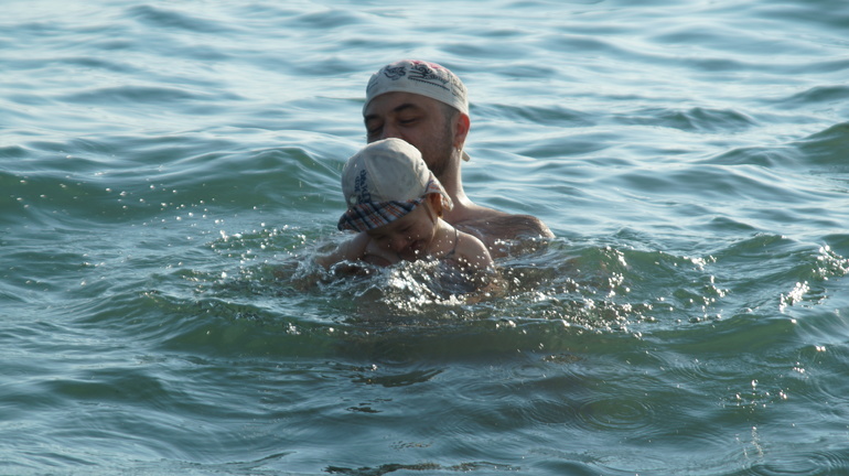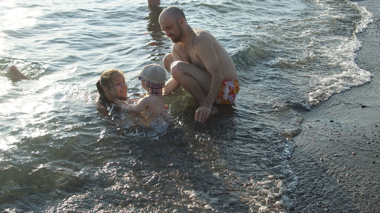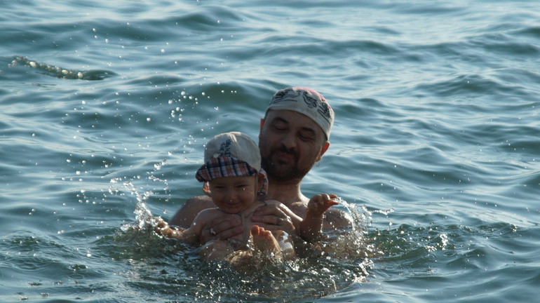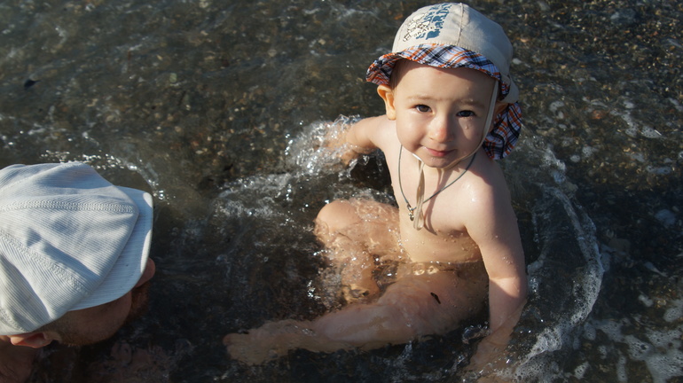 Спасибо)).Даньку точно было не вытащить.... Он просто сроднился с водой!!! А моя дочка первый раз море увидела в 4 года и вошла в него только в конце отпуска...(((. За то сейчас плавает , как рыбка))).