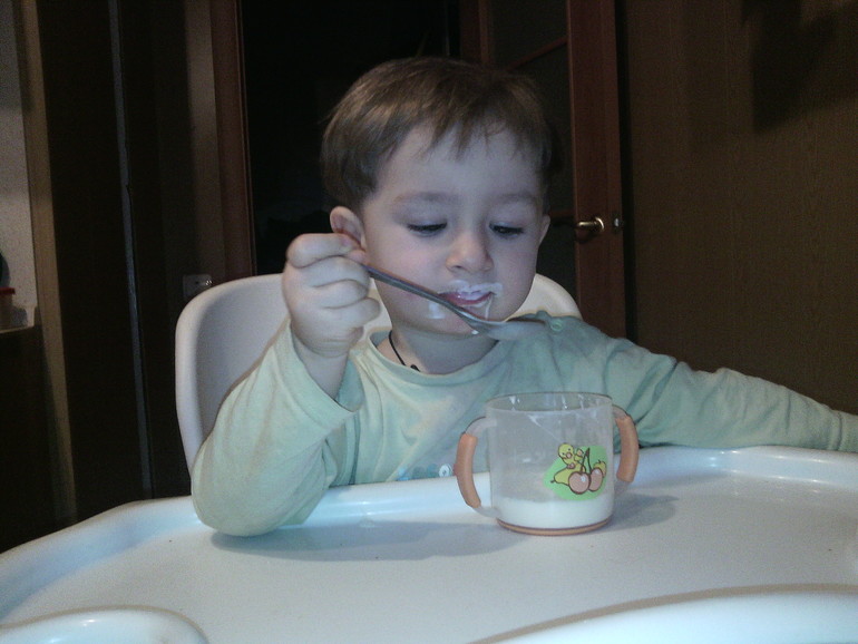 кушает все, ложкой и вилкой есть умеет, но ленится, любит кефир из чашки есть ложкой, мяса поменьше даю, а то запоры случаются.., овощи, фрукты, рыба, творог, яйца, каши, макароны...