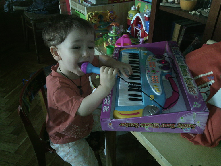ОООчень любит петь под пианино, гитару и прочие музыкальные инструменты, и пляшет)))))