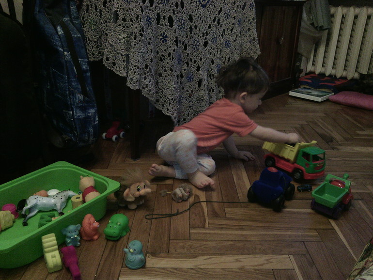Игры.... Может сам играть по 1-2 часа, катает машинки, смотрит книжки, мультики... Очень любит пазлы- собирает из 1-3 деталек; лото- находит картинки на карточках; стеклянные шарики- перекладывает стаканчиком, ложечкой, колпачком, катает в ручках;кинетический песок- делает куличики простые, пересыпает в руках, катает там машинки, тыкает пальчиками; рисование- пальчиковые краски, акварель, водные раскраски, контурные раскраски, палитра; лепка- масса для лепки, плей до, лепит колбаски, лепешки, отрывает, тыкает пальчиками; икевская железная дорога...; карточки Домана- слушает, реагирует на хорошо знакомые предметы.
