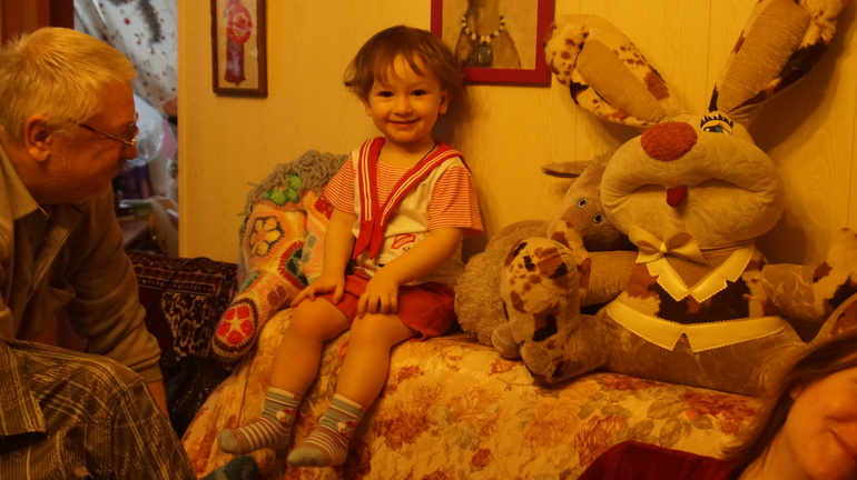 и матрешку- курицу с яйцами. А крестные подарили серебряный крестик, первый крестильный крестик мы потеряли на море(((...