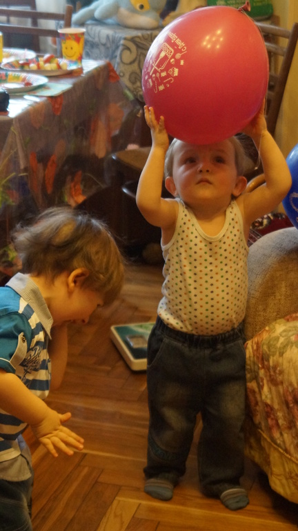 Ну и конечно торт!!! Пекла сама, бисквитный в 2 яруса, здесь с ББ заказала только вкусные "шары" на палочках с именем Дани и "ленточку" для Полины. Получилось очень оригинально и красиво! Нижний ярус был шоколадно-банаово-ореховый для Полины, а верхний ярус - шарлотка для Дани!!