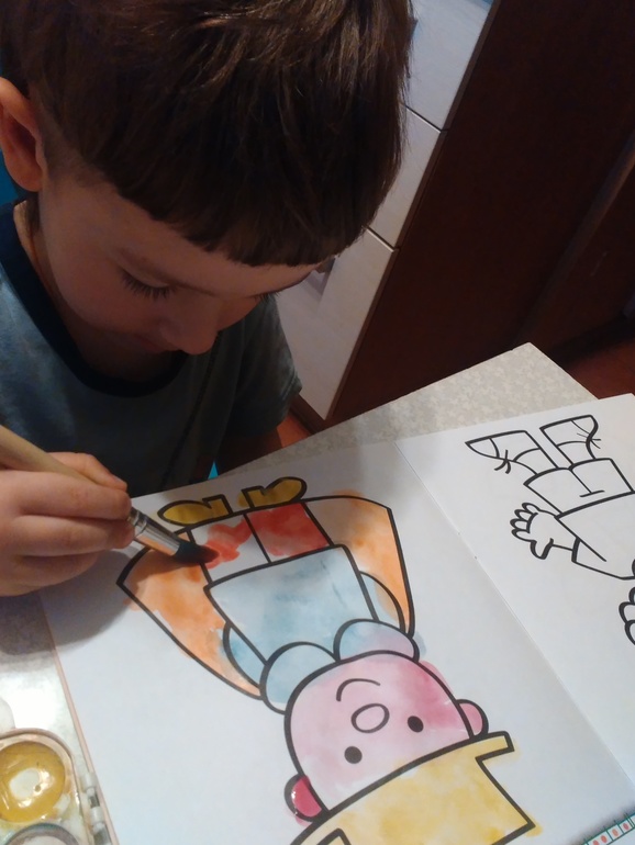 В продолжении моих постов о художественном творчестве младшего.... Давно не давала Дане акварельные краски и раскраски... А сегодня погода была плохая, гулять не пошли, зато почти час сидел Данёк и разукрашивал. И опять я сидела и дивилась, как он это делает аккуратно, где то по образцу, а где то сам придумывал какого цвета что будет. Вот несколько работ...