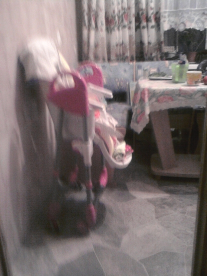 На самом деле он не такой уж большой, а ещё он очень легко складывается, у нас кухня очень маленькая, мы как покормим, сложим и к стеночке ставим, а ещё в нем в комнате телек смотрим, когда мама занята, на кухне телевизор высоко, плохо видно)))))))))) На телефон сфоткала, быстро и смазалось, но видно...)))
